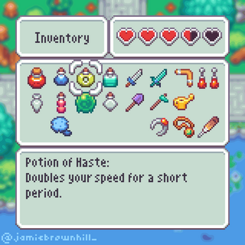 Stirring animation will be great! Suggestions? This is already so perfect! I only have one little extra idea, which is to have some sparkles, just a transparent sprite that could be layered on top of the potions in some cases maybe. To make "extra magical versions" of the potions, or maybe for a little potion finished anim in the UI. Not sure, depends on what you think ofc :p