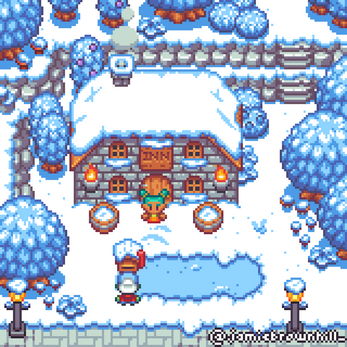 This might be a big ask but - I really need blob tilesets of the grass and snow. I want the player to be able to dig up grass to decide where there are dirt patches on the farm, and I just can't get Godot to autotile correctly with just the supplied tiles. I've tried everything I could think of, every bitmask configuration and even plugins. I ended up making my own blob tilesets with the program Tilesetter. They technically work great but need some love from a real pixel artist. Here's my best grass attempt so far: